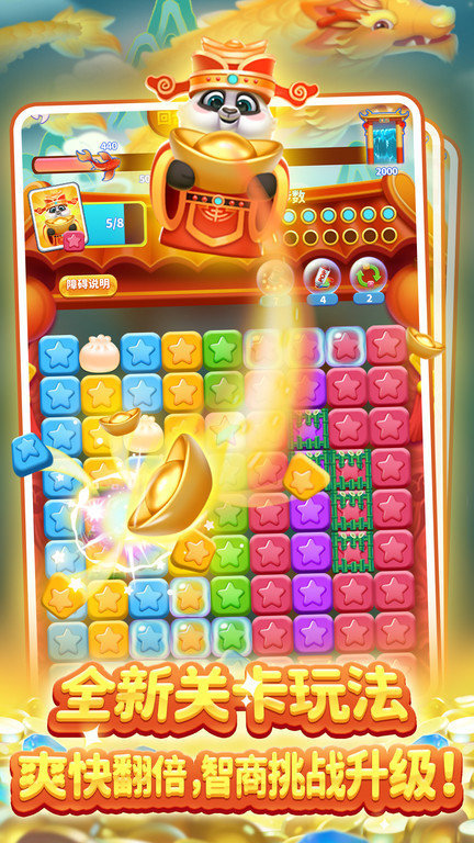 在点消嘉年华中,你可以化身为龙女、精卫或者财神,使用独特的炫酷技能,诸如“财从天降”等,通关更快速,消除体验更炸裂!