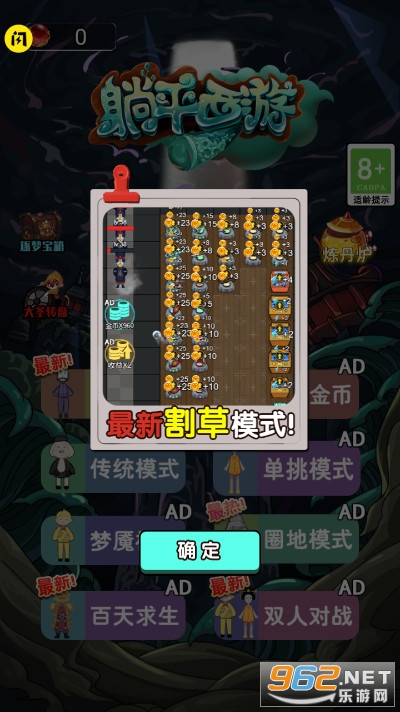 1.选择不同的割草模式,还可以去专属的炼丹炉去购买高科技物品,去转盘收集