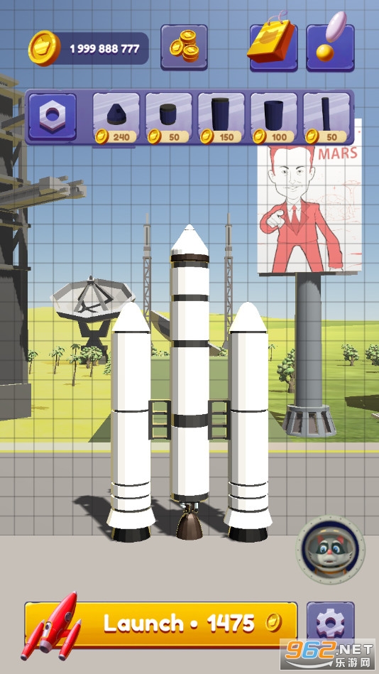 趣味的天空模拟游戏,玩家可以利用各种零件来制造火箭太空飞船等,让浣熊前往天空冒险,小编带来的是伊隆火星破解版,有着无限金币免费用,而且全部配件解锁,喜欢的朋友可以下载试试。
