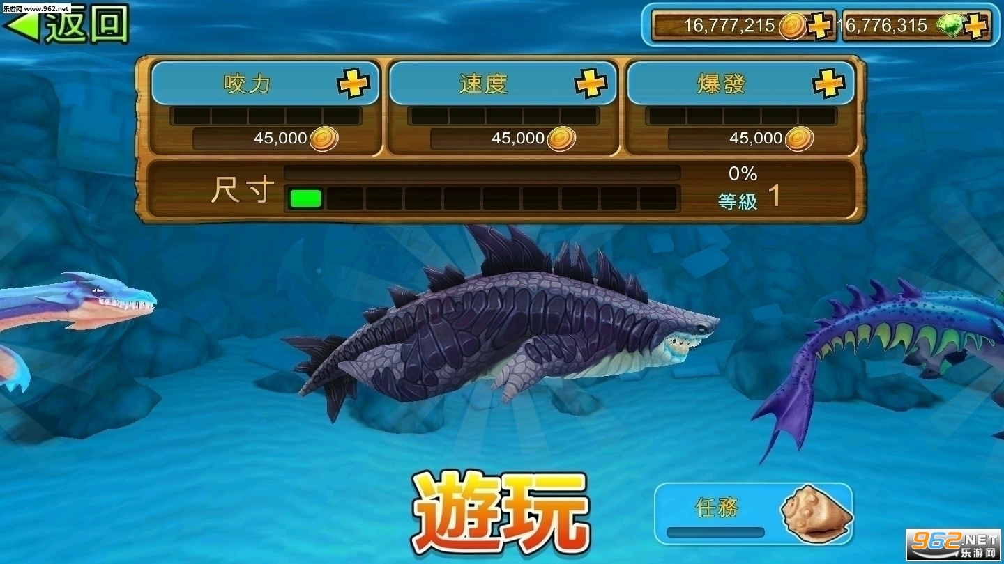 除了进食生存外,冒险也是该游戏的另一大乐趣点。海底的错综复杂的地形、让人摸不着头脑的指示牌,都勾起了大家的探险欲望。如果遇到潜水艇,一定要加速撞它,我有最强的鲨鱼,只要加速必秒。鲨鱼在游戏中获得的金币提升鲨鱼的速度、撕咬范围和饥饿值等各项指标,同时还可解锁掉更多的鲨鱼,供玩家选择。要是你的鲨鱼够凶狠,也可以凶狠地吞掉捕鲨猎人,太血腥了~