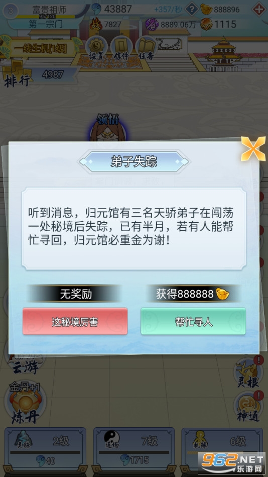 趣味的修仙放置游戏,玩家将建立门派,广纳弟子,不断的提高宗门的影响力,小编带来的是掌门求带飞破解版,有着无限资源,无限元宝和名气,炼丹无CD,喜欢的朋友可以下载试试。