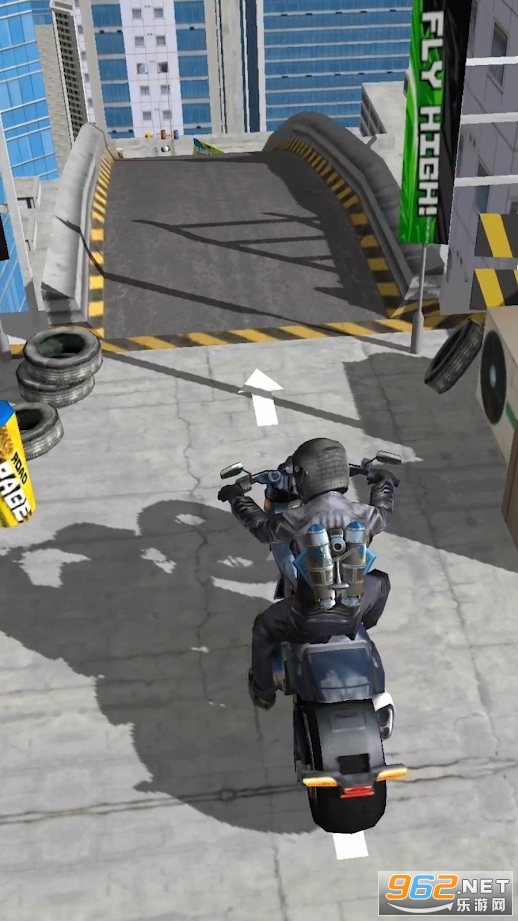 2、通过虚拟按钮驾驶摩托赛车进行特技;
