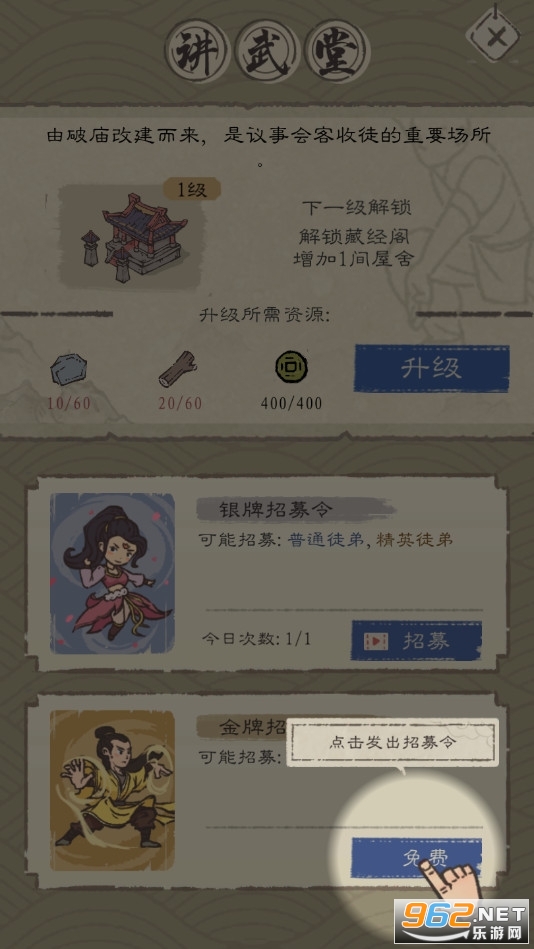 游戏中门派弟子玩家可以任意差遣,让他们建设门派,将更快速的发展!