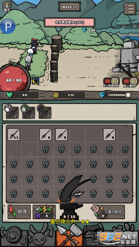 一款轻松有趣的放置养成游戏,游戏中玩家将不断的制作更加精良的箭矢,通过放置合并来提升你的战斗力,同时招募更多的弓箭手,游戏的玩法轻松有趣,放置既可以不断的击败怪物,推荐给喜欢休闲养成游戏的玩家。