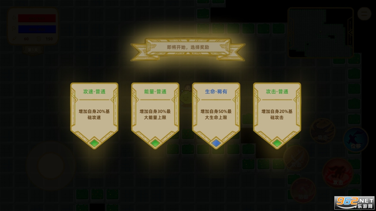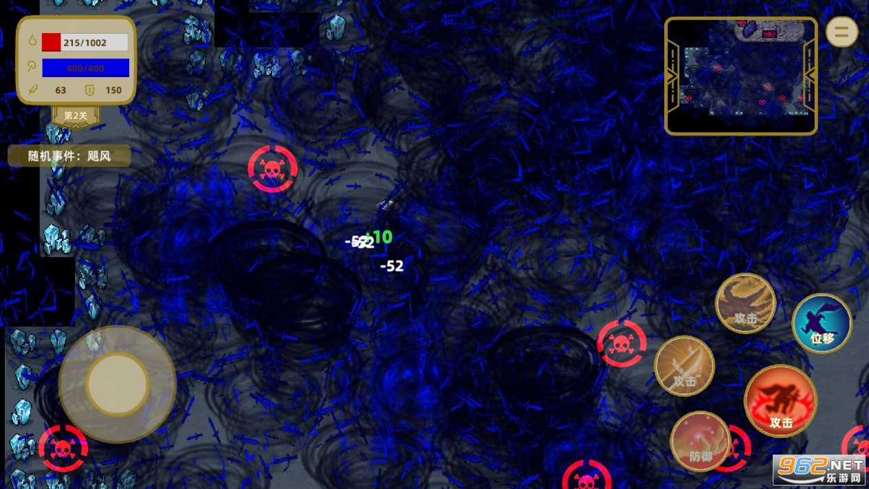 1、这里为用户带来了虚拟摇杆移动的操作方式,右手控制技能和攻击按钮,左手进行走位再走位