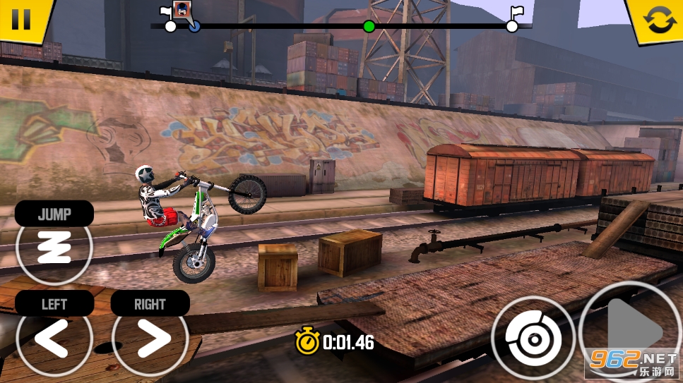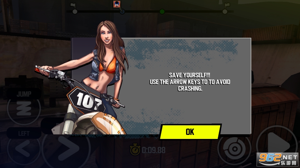 1.驾驶摩托车穿越地图,避开障碍物,注意不要绊倒并失去资格。