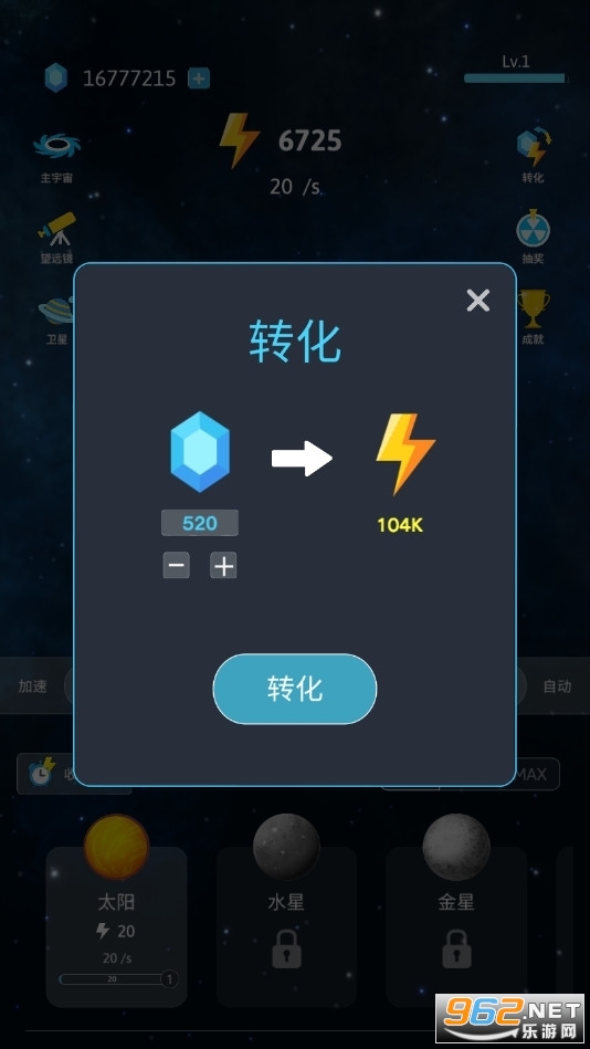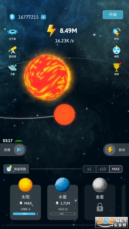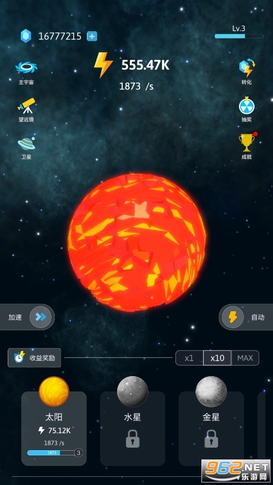 趣味的放置游戏,模拟制作各种星球,比如制作地球、火星、水星等来制作完整的太阳系等,小编带来的是造个小宇宙破解版,有着无限钻石和能量,喜欢的朋友可以下载试试。