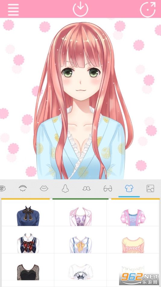 《二次元动漫换装》是一款画面精致的二次元题材的少女换装手游,游戏中玩家可以为少女模特换上各种各样的服装首饰等,可以选择上衣裤子、裙子、鞋子、发型、脸型、嘴巴等等,自由的搭配组合,设计出多样的少女形象。