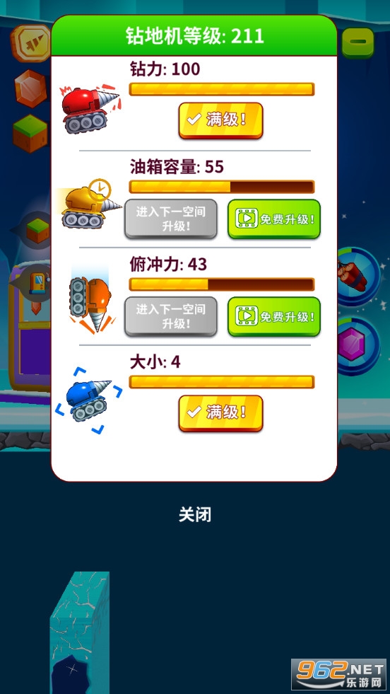 4.钻力、油量、俯冲力,升级你的挖矿机属性,成为超级形态。