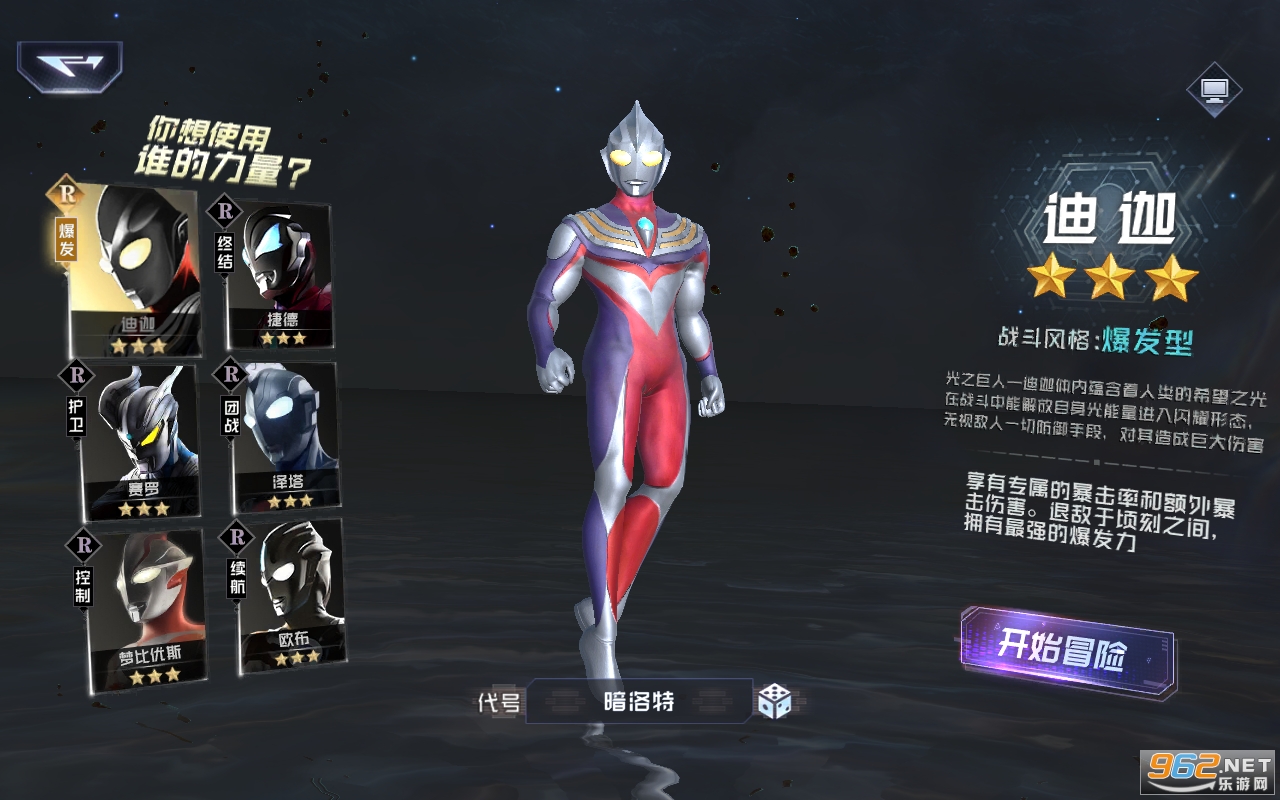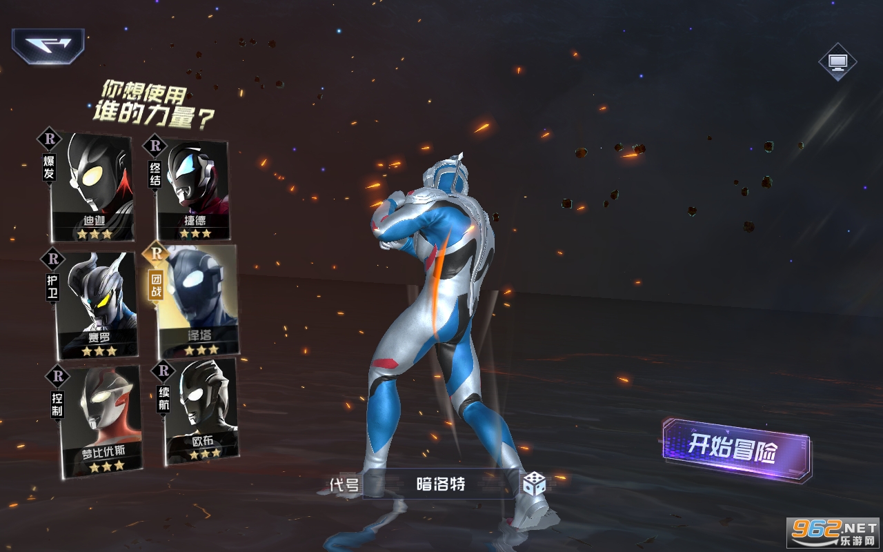 3、开始在这里去进行选择不同的奥特曼去进行战斗,游戏百分百还原动画中奥特曼的大招技能。