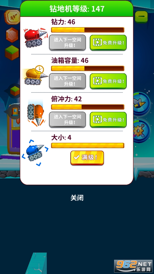 4.钻力、油量、俯冲力,升级你的挖矿机属性,成为超级形态。