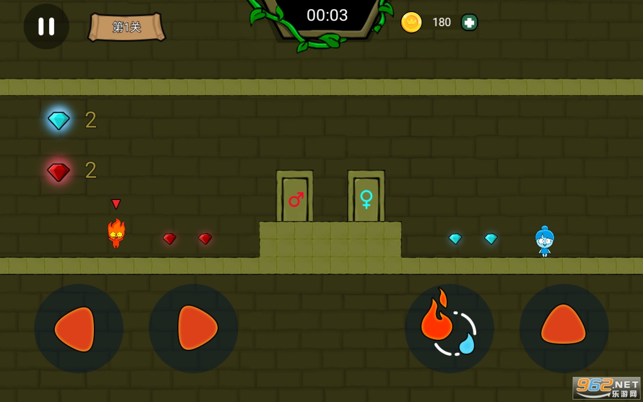 2、冰女孩进了火海,或者火男孩进了冰海,游戏结束。如果碰到不属于自己的宝石是没有关系的。