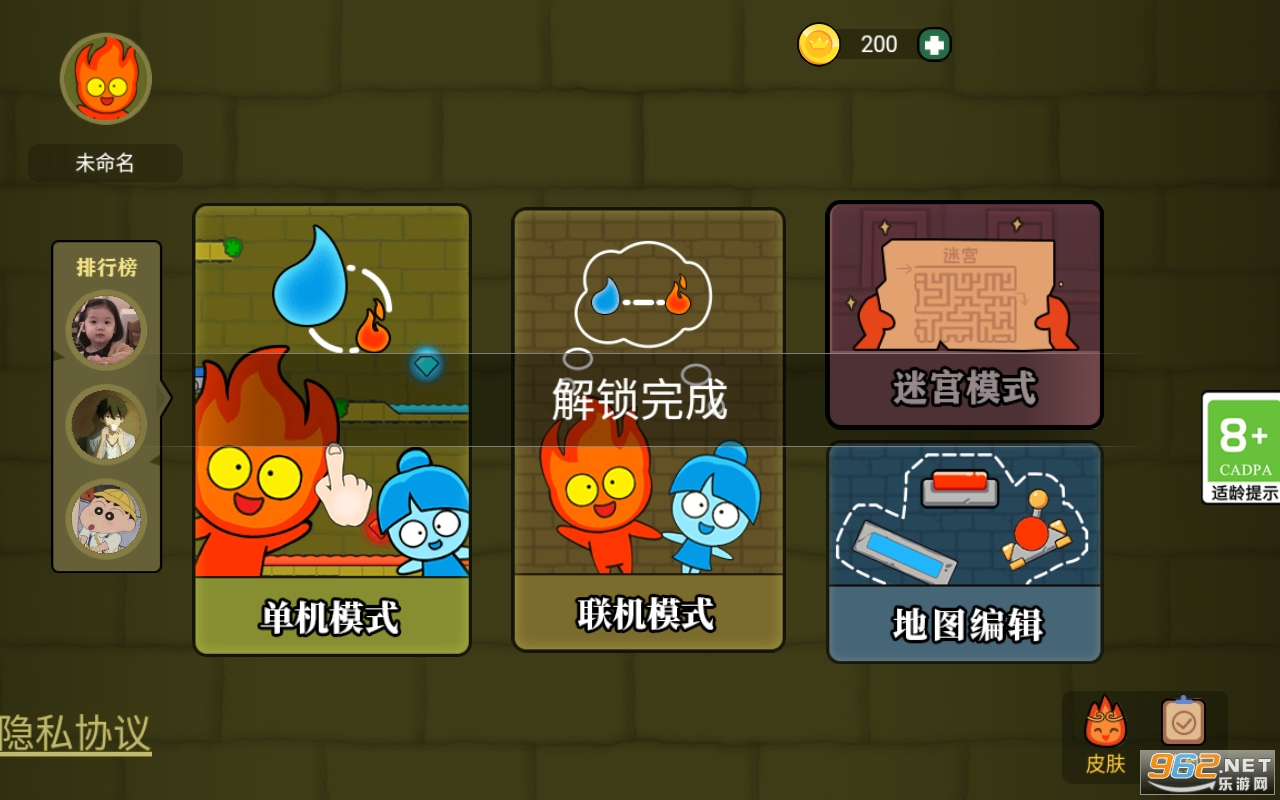 《森林冰火人双人联机版》是一款玩法很不错的趣味休闲闯关游戏,丰富的独特的游戏挑战玩法,轻松的手指点击操作的乐趣,和你的朋友来一句联机,双人合作完成挑战以及闯关即可,感兴趣的亲们赶紧下载吧。
