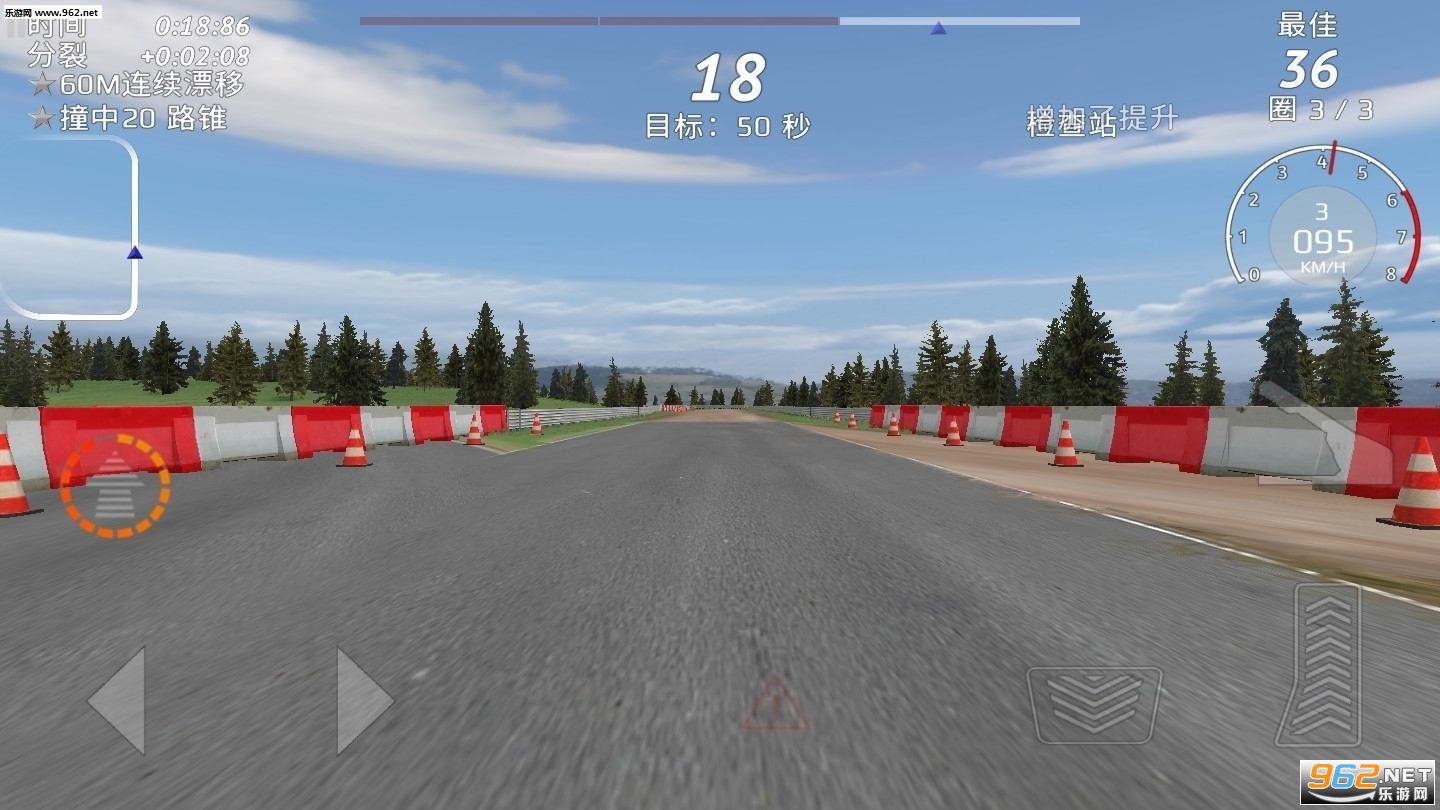 5、控制:倾斜或触摸转向。手动或自动加速。4种不同的观点可供选择。