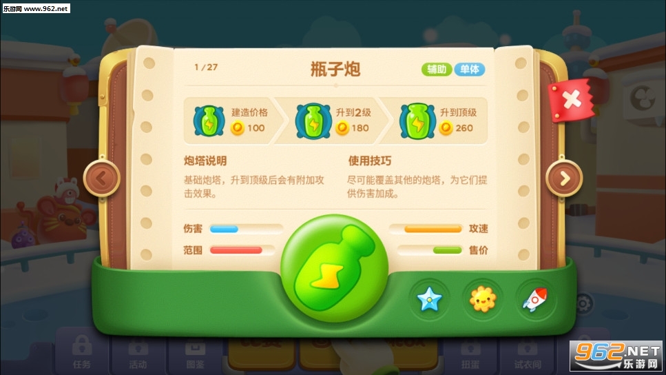 趣味的塔防游戏,玩家可以解锁瓶子炮、火箭炮等各种不同的炮台道具来攻击敌人,不同的炮台攻击效果和攻击力是不同的,合理布置,抵御进攻,游戏已破解,无限钻石免费用,喜欢的朋友可以下载试试。