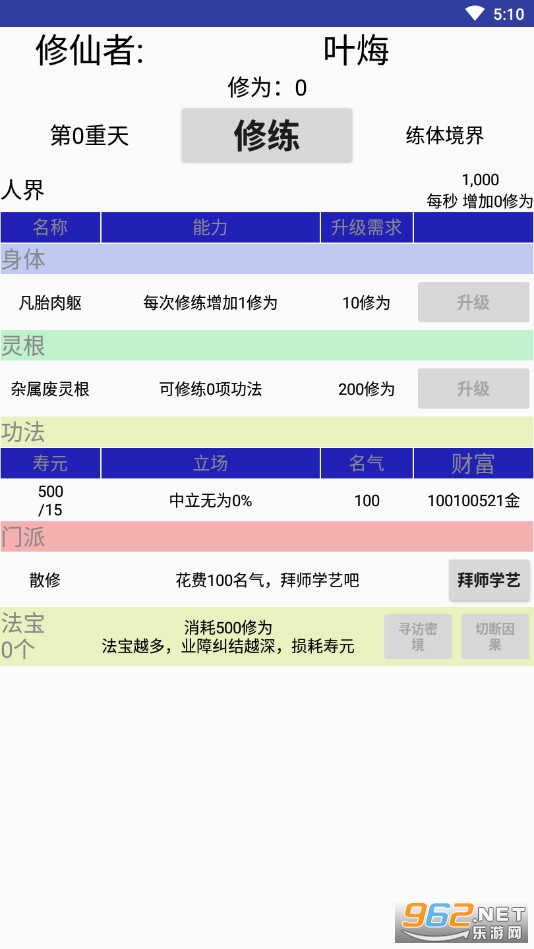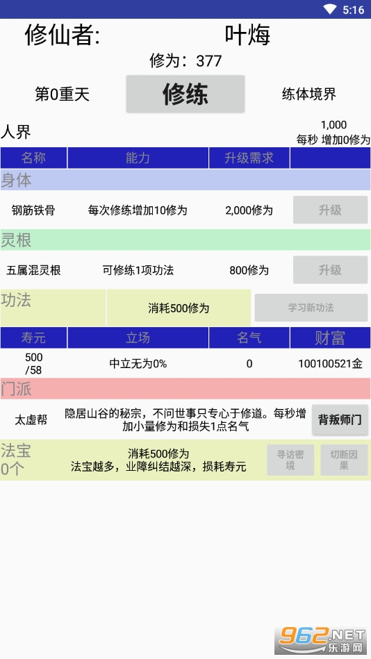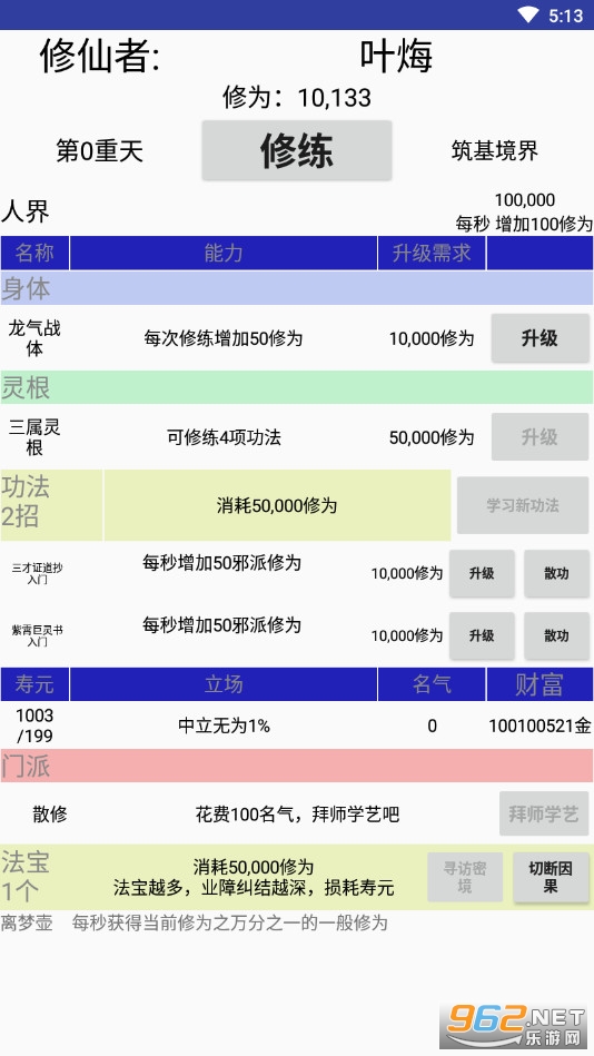 2、游戏虽然体积小,但游戏内容丰富,有功法,有门派,有法宝应有应有,玩家可以快乐修仙,快乐渡劫,一起再续前缘;