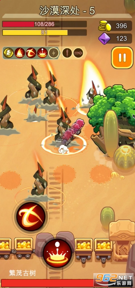 3、自由消耗金币升级英雄角色,走过了沙漠和森林,塔防关卡难度更高。