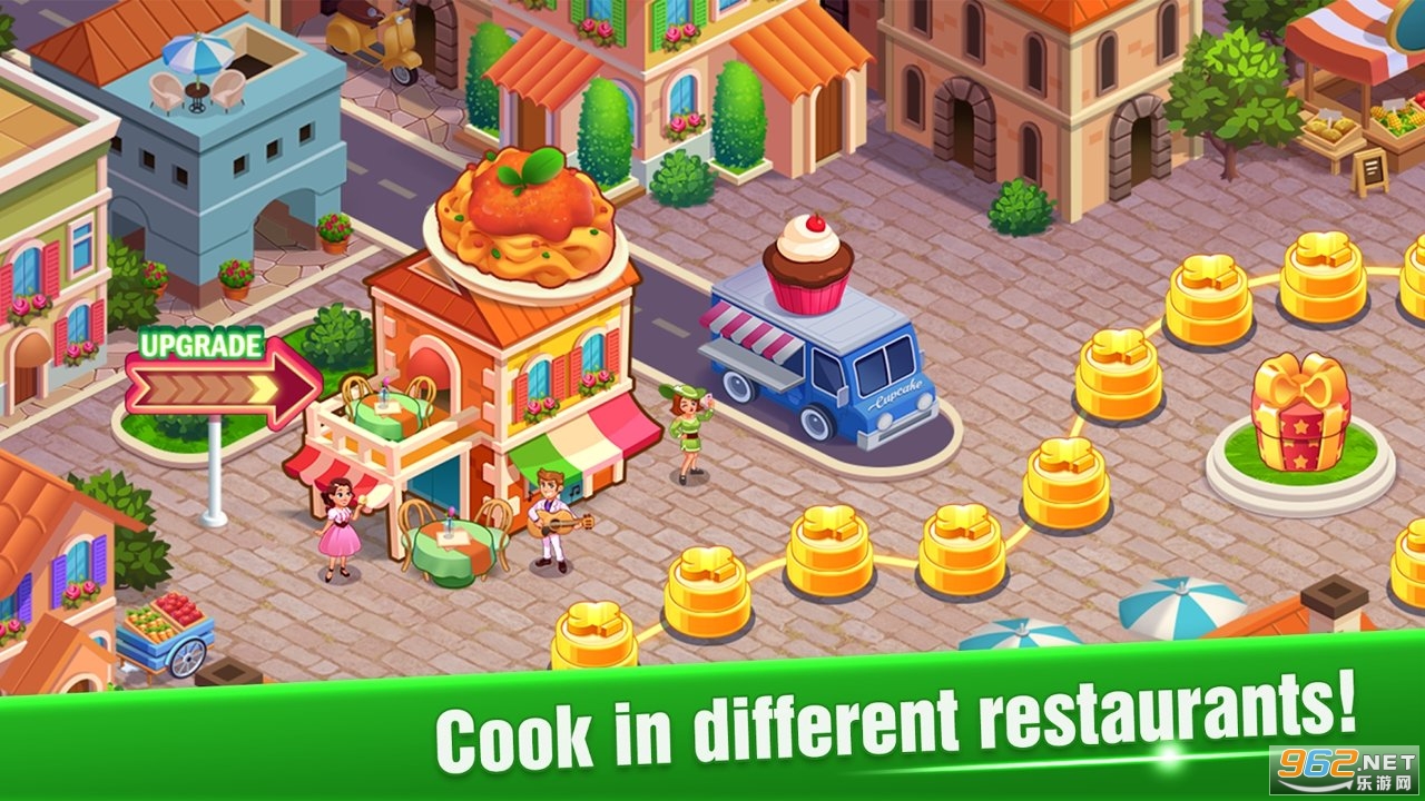 在我们美丽的美食地图上,从餐厅飞往下一个。冒险时,您将参观新餐厅。在此烹饪游戏中让您的烹饪技能出名!让您的烹饪大师成为现实!
