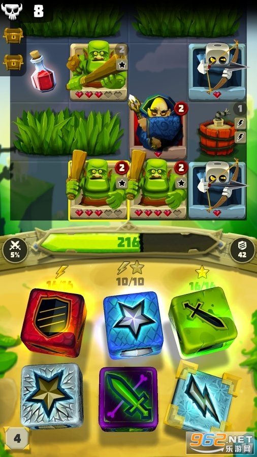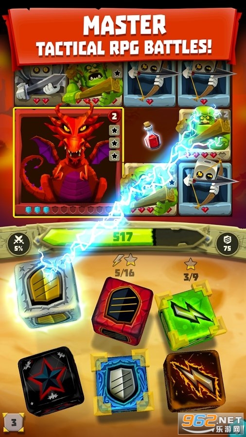 一款非常有趣的休闲冒险闯关游戏,游戏的玩法轻松容易上手,玩家将挑战各种各样有趣的玩法,不断的投骰子来进行冒险,组建你的团队来面对更多的敌人,游戏中还有技能和道具能够影响骰子的能力,游戏的操作简单容易上手,推荐给喜欢休闲游戏的玩家。