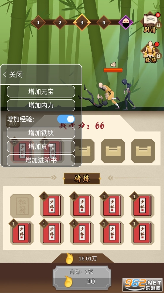 修改无限元宝,免广告获得奖励,内力不减反增,3倍经验,铁块不减反增,真气不减反增,看一次广告直接增加100次次数,无限进阶书,获得声望后即可获得大量声望