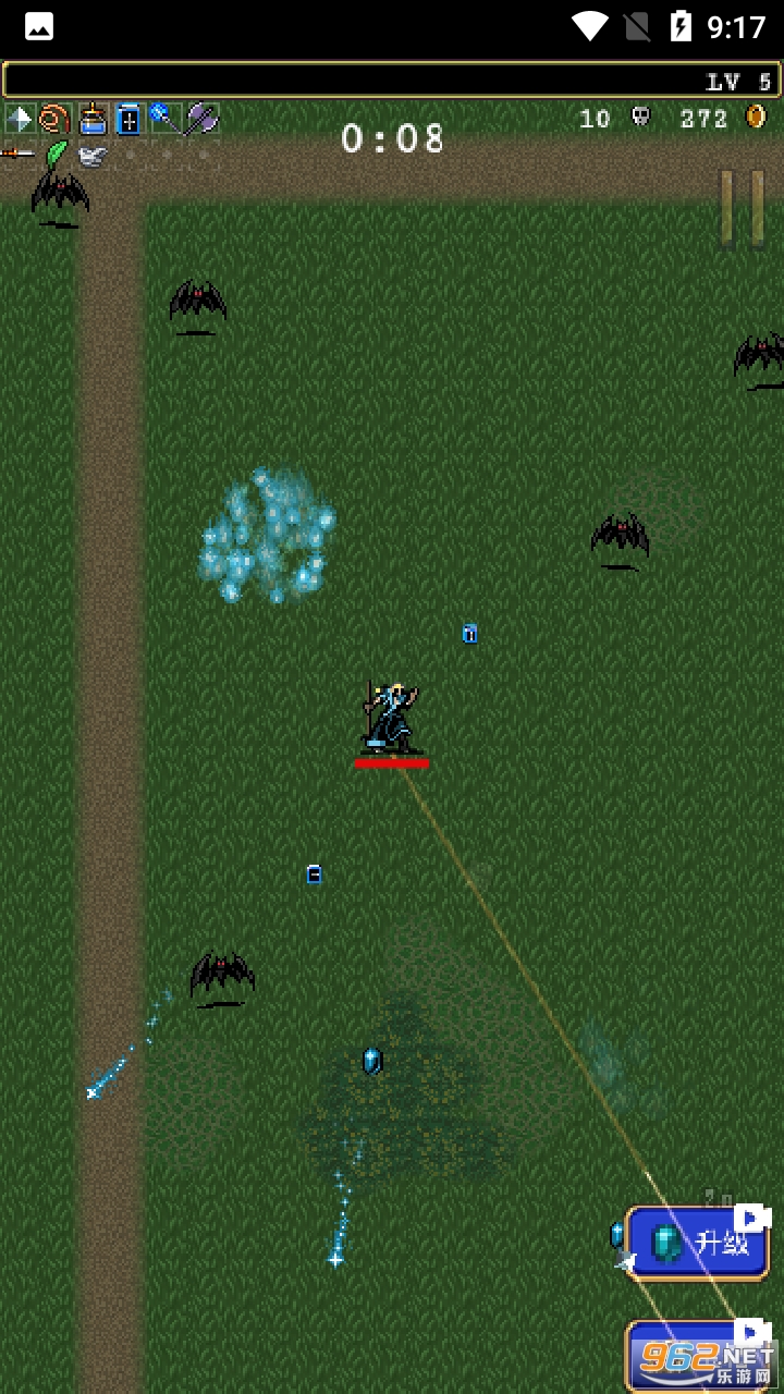 4、辅助武器:魔法杖+月桂,魔法杖在前中期特别好用,击退最靠近自己,的敌人提高了许多容错率,但后期要搭配其他强力武器;月桂的护盾功能对于没有升级属性的前期玩家来说很有用,经常可以在关键时刻保命。