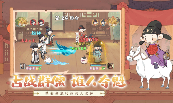 游戏玩法包括有行万里路、书山试炼、舌战群儒、诗仙试炼等。