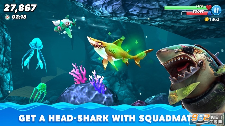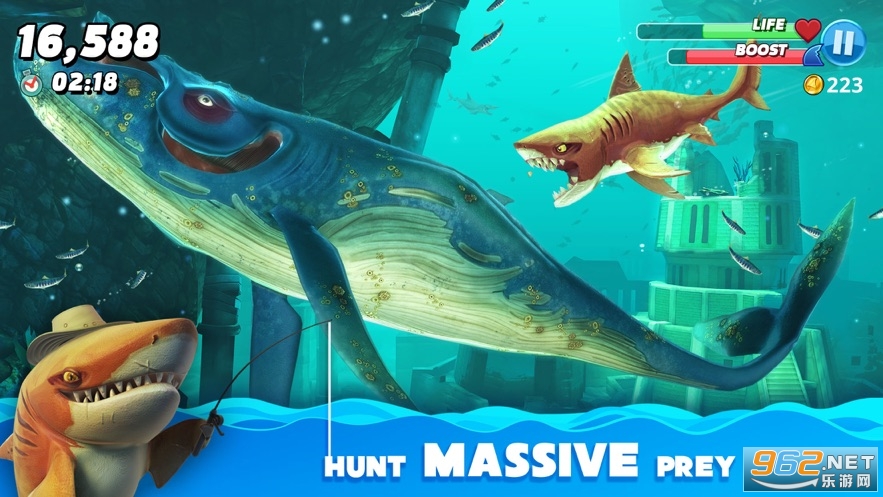 迎战新的海洋战场,化身凶猛的鲨鱼与应对一切的挑战,不断的吞噬让自己更强大;