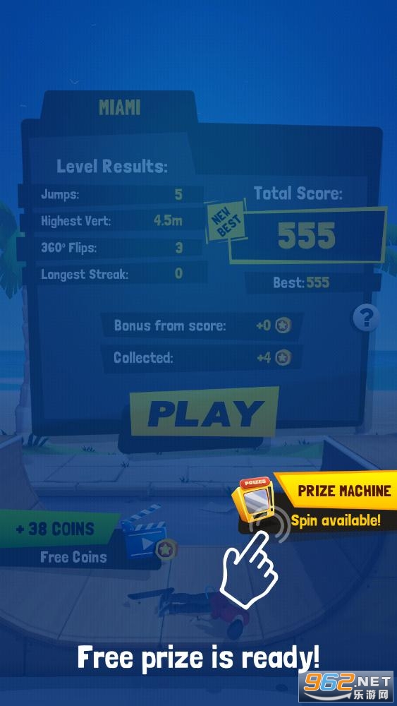 3.解锁更多的关卡和滑板,每个滑板之间的参数和差距还是比较大的,炫出你炫酷的滑板技能吧。