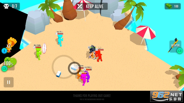 这款游戏很直接,玩法基本就是看谁不爽直接上去干,简单粗暴直接,这是这款游戏的代名词,直接冲上去干他,不要怕人多被包围了,来多少干多少,游戏按照击败的人数来计分,所以不要害怕人多,人越多分数越高,排名越靠前。