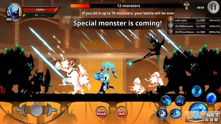 2、设有多个游戏副本,玩家可以组织不同职业的火柴人经营一起组队,这样可以更加轻松的打败boss。