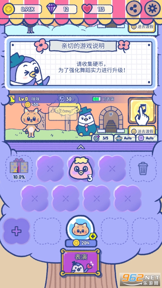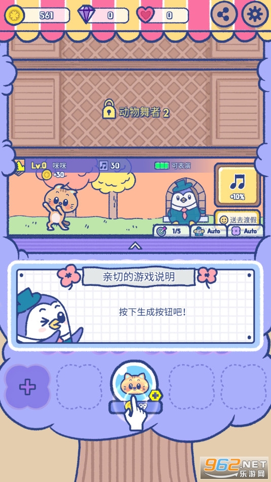 《动物舞者》是一款清新可爱风格的放置休闲模拟经营游戏,在这款游戏中玩家将通过合并来解锁新的成员,游戏中你将带着你的动物舞者们一起前往不同的区域中进行表演获得奖励,不断的解锁更多的场景,享受音乐和舞蹈的狂欢。