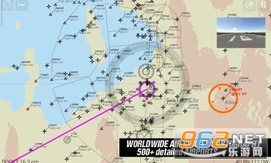 WORLDWIDE导航和飞行计划与500+准确的机场,日夜循环,REALTIME metaR天气条件,空域地图学与8000航点。
