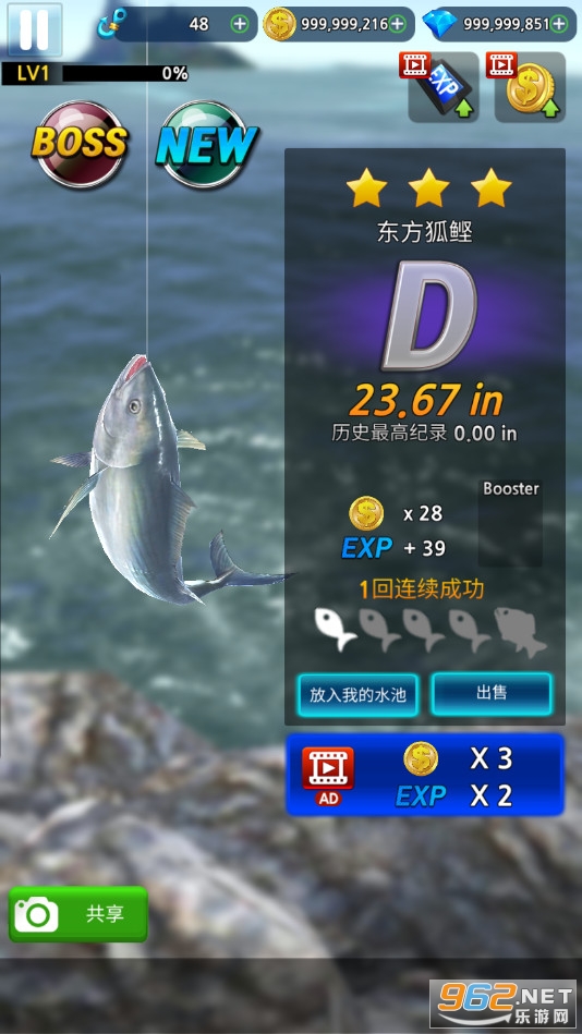 最真实的真3D 海上垂钓!250多种海鱼任您捕获, 可以在最真实的场景中体验钓鱼的乐趣!