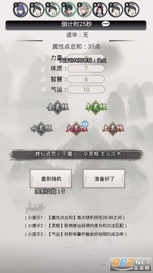 --游戏玩法简单,玩家进入游戏后即会随机自身属性。然后进入修行阶段。