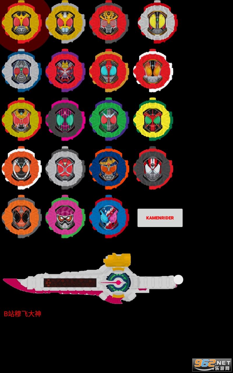假面骑士平成嘿嘿剑的音效模拟游戏,超多的平成年的假面骑士的印章等待着解锁。