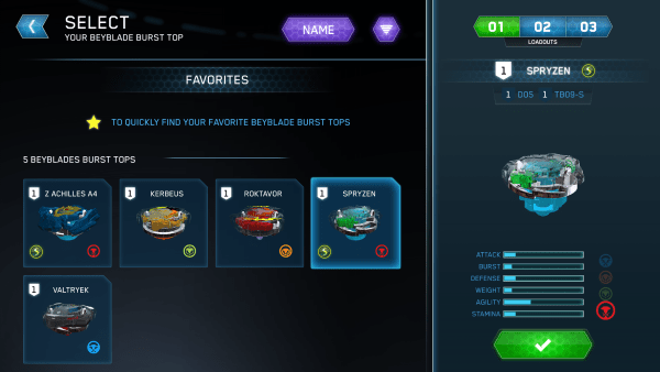 然后就进入选择陀螺了,拿上心爱的陀螺开始战斗吧。