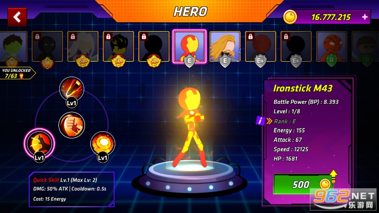 趣味的火柴人格斗游戏,加入了钢铁侠、美国队长、蜘蛛侠等众多的美漫英雄,玩家可以解锁自己喜欢的英雄进行战斗,小编带来的是超级火柴人英雄战斗破解版,无限金币免费使用。