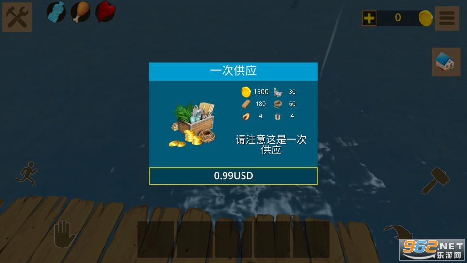 一款在海洋中求生的模拟游戏,裤衩男被抛弃在无边的大海里,只有一个小木筏子,为了能够生存更久的时间,我们需要在海面找到生存所需要的物资,然后用这些材料建造房子制作工具,用你的小鱼叉捕海鱼,保证你的角色吃饱穿暖,这样你才能更好的生存下去,这个过程可以锻炼你的独自生存能力。