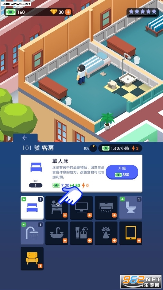 策略型酒店经营类休闲游戏,操作简单,制定战略决策,发展酒店业务,赚取丰厚收益。从普通住宿服务开始慢慢做起,随着发展逐渐解锁和升级设施,努力建设属于自己的酒店帝国。从小型旅馆发展成为全球最佳度假酒店,成为 VIP 客户的必去之地!