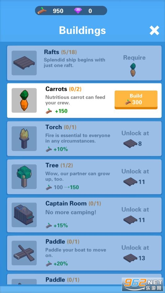游戏的操作很简单,放置为主,在这里你可以不断地解锁各种道具和材料,在里有序的进行建造,和以往的海上生存游戏不同,在这里你可以游泳,可以救人,用一个手就可以建造属于你的海上世界,成就感满满!
