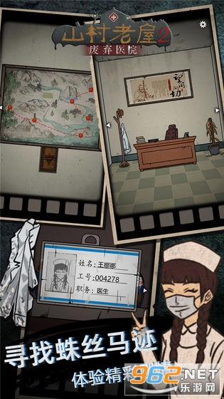 山村老屋2废弃医院是《山村老屋》第二部,游戏延伸了上一步的剧情和情节。故事来到了一个隐秘的被遗弃的医院,医院中到处都透露了诡异的气息,侦探是被谁打晕的?为何会被送到这里?这里又存在什么秘密?似乎黑手在借助男主在寻找什么?诡异的身影一直徘徊不去,深渊逐步袭来,是什么使灵魂不得安息,又是什么让背后的人念念不忘?