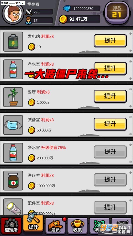-不断升级避难所,赚钱速度再加倍。