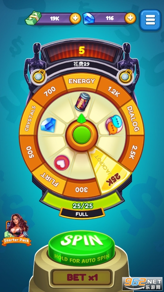 一款非常有趣的休闲模拟游戏,游戏的操作简单,你需要不断的旋转转盘来获取各种资源,同时安排你的明星进行不同的工作,不断的解锁更多的好感度,提升她的名气和价值,推荐给喜欢休闲游戏的玩家。