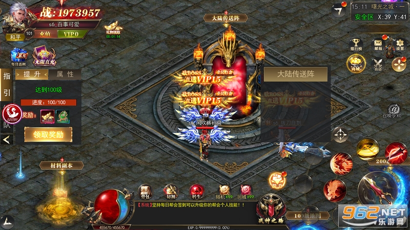 4、新增BOSS地图:圣域-龙渊,开服30天开启,掉落战灵、龙珠等珍稀道具