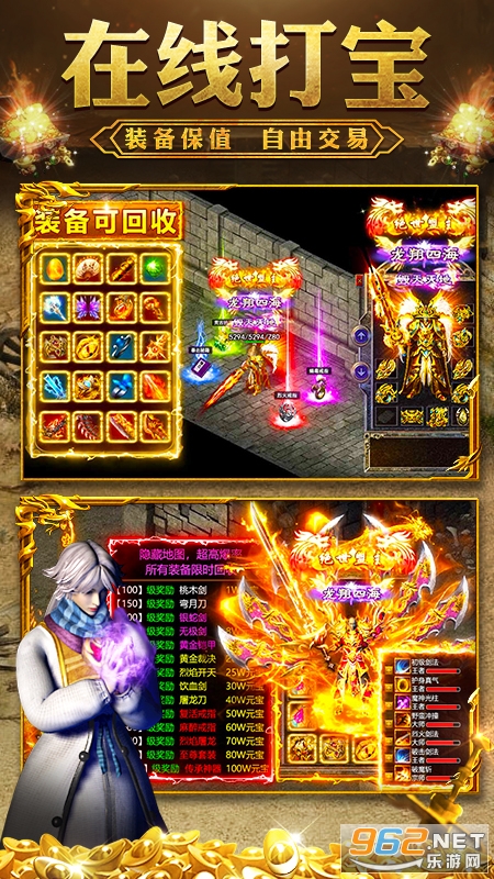在线即可交易,散人也能变土豪,游戏内所有装备全部免费掉落,系统回收秒到账!