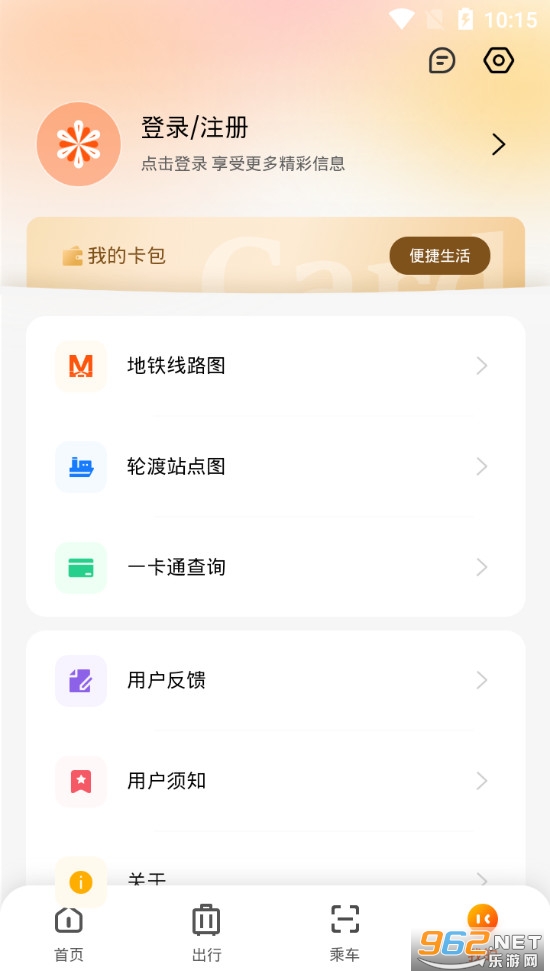 启动应用后,点击屏幕下方的“换乘” ,进入本功能