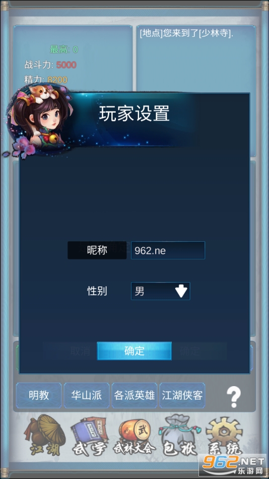 您扮演一位16岁初入江湖的少年。一开始您只有2000金币和5000的武功,可能会遭遇恶人下生死状,或者被人暗算身中剧毒,也可能遇到良师益友与您并肩作战。