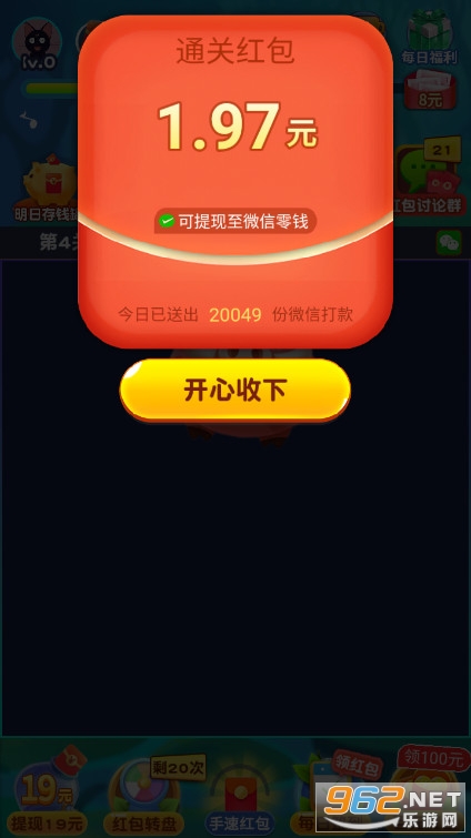 在奖励上有稍微的改动,不需要红包券了,通过消除、升级、看视频方式直接获得红包福利!