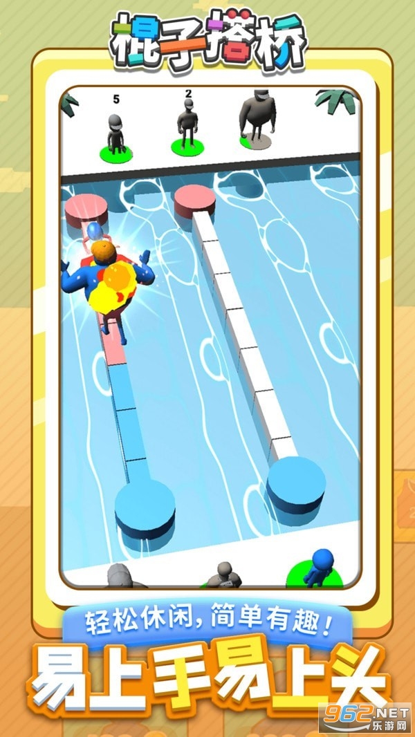 《棍子搭桥》是一款对战闯关游戏,自由完成很多有趣的玩法,利用棍子搭建桥梁,让你的角色顺利到达对面,谁先到达即获得胜利,比拼的是个人脑力思维,感兴趣的来下载吧。