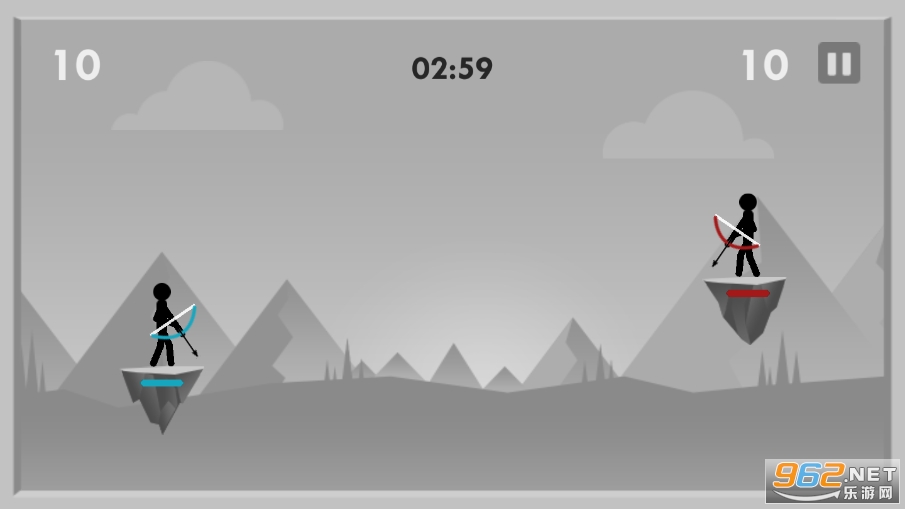 在游戏中有控制力度和角度,不断击败处于不同位置的火柴人对手,要击中2箭方可消灭,击中头部则一箭死亡,游戏操作简单,试着挑战自己的最高记录吧。